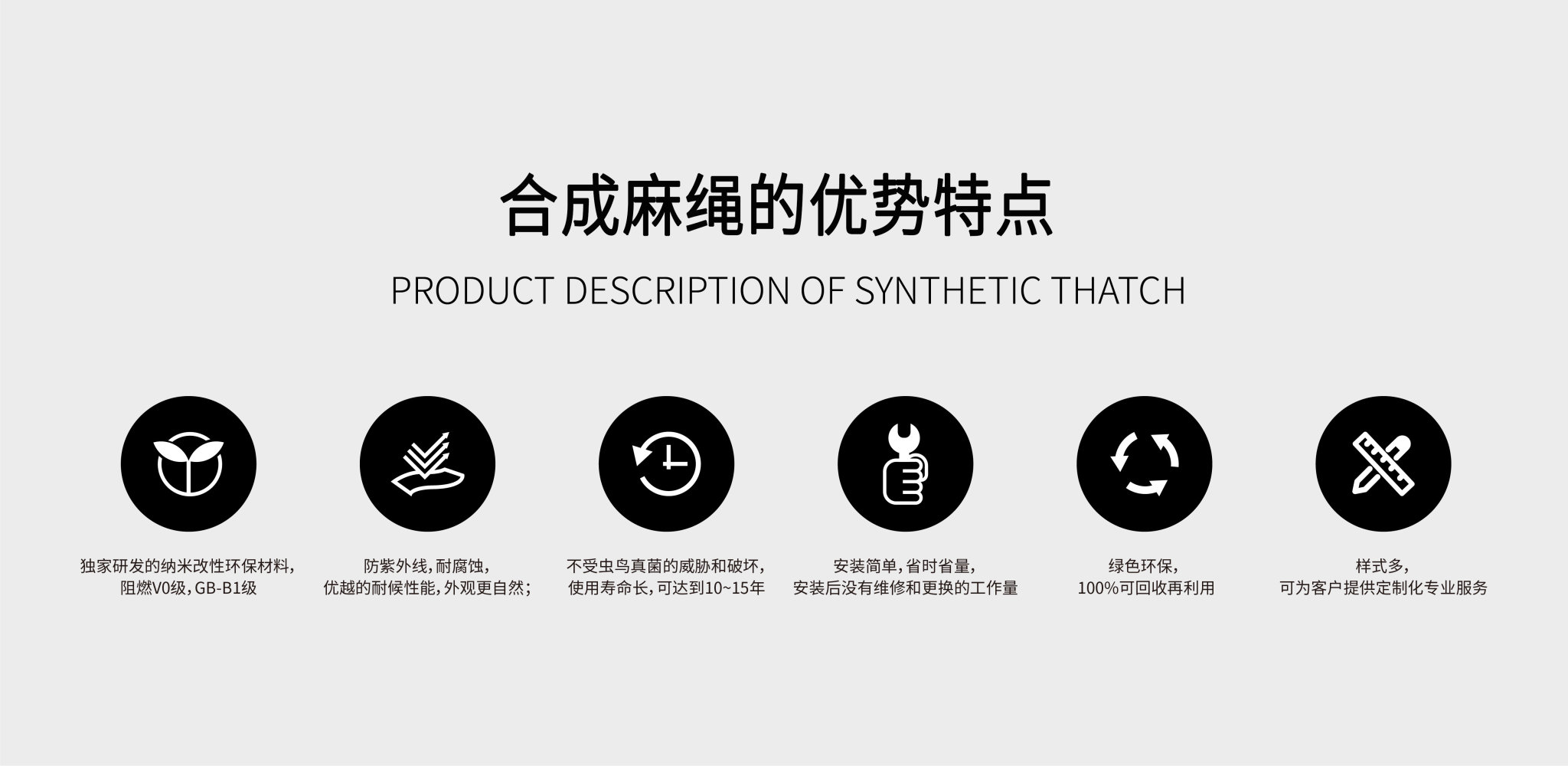 ? ? ? ? 合成麻繩多應用于酒店中的花園小區,動物園,主題公園,餐館酒吧中的戶外涼亭,園林景觀溫泉度假村,海邊燒烤吧,休閑亭,高檔建筑群小區,別墅小區,博物館,海邊酒吧,巴士站,風情街,水上休閑涼亭,熱帶風情風格等場所。