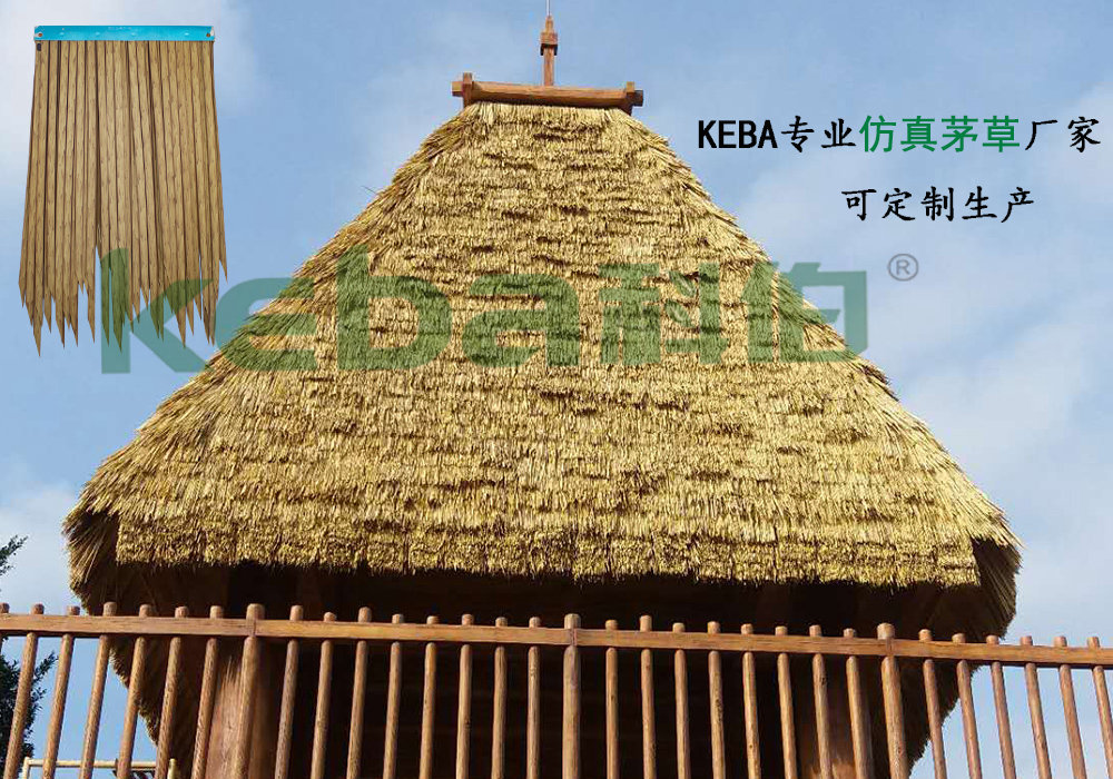 ? ? ? ? 合成茅草是深圳市科佰工貿有限公司采用目前國際上先進的納米合成高分子材料技術和工藝生產。利用納米粒子的特有的物理化學性質,使得其具有更加優異的耐候性及阻燃性,能滿足美國ASTM-G154-06 抗UV老化測試標準,并能通過美標UL94-V0級阻燃,在國內仿真茅草也通過了國家防火建材阻燃測試B1級。?